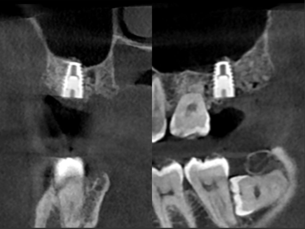 今回のケースは新しいインプラントを使うことで、骨造成の負担を減らし、清掃性を高める事ができました。